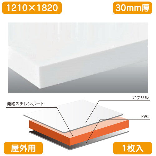 屋外用(アクリル板貼り)/カルプボード 1枚入 ゼブラチャンネル 白 1210×1820×30(個人様宅配送不可)