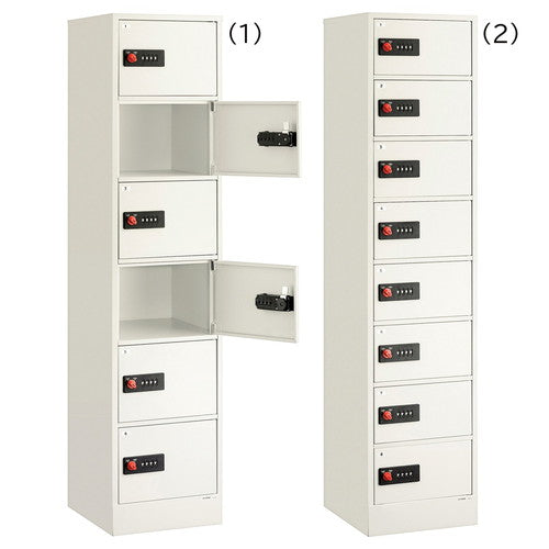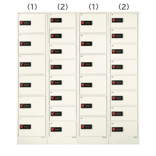 レイアウトや組み合わせが自由自在。庫内の高さの異なる2タイプをご用意。暗証番号の盗み見を防ぐ! 安心のリターンゼロ機能。4ケタのダイヤルでお好きな暗証番号を設定できます。ツマミを回すと、すべての数字が自動的に「0」に戻るリターンゼロ機能を搭載。暗証番号を崩し忘れる心配がありません。また、鍵を使わないので、鍵の管理や紛失の心配がありません。手荷物収納やシューズロッカーとしても使える6人用。携帯電話・ポーチなどの小物を収納できる8人用。