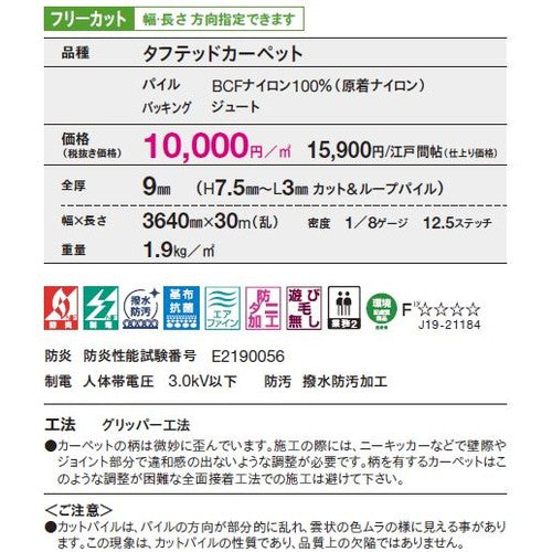 品種:タフテッドカーペット パイル:BCFナイロン100%(原着ナイロン) バッキング:ジュート